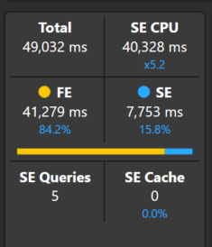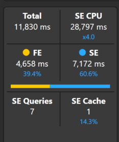 The query is quite slow, taking a staggering 508 seconds to complete. Taking a look at the server timings, there are a total of 216 storage engine queries, mostly representing one query for each day’s 28-day distinct count over the past 6 months.