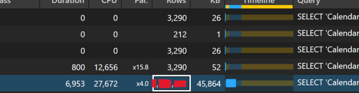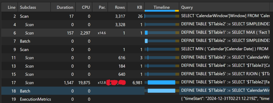 Again, we see a great performance gain with the total duration around 2 seconds. With the introduction of the new many-to-many relationship and precomputed windows, the normal left 0uter join pattern is replaced with a semi-join batch pattern that, in this scenario, reduces the combination of Things and dates materialized which speeds up the calculation.
